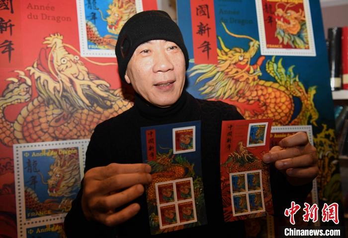 當(dāng)?shù)貢r間1月26日,法國發(fā)行龍年生肖郵票,為中法建交60周年增添濃郁的節(jié)慶氛圍。圖為法國郵政官員展示郵票。 中新社記者 李洋 攝
