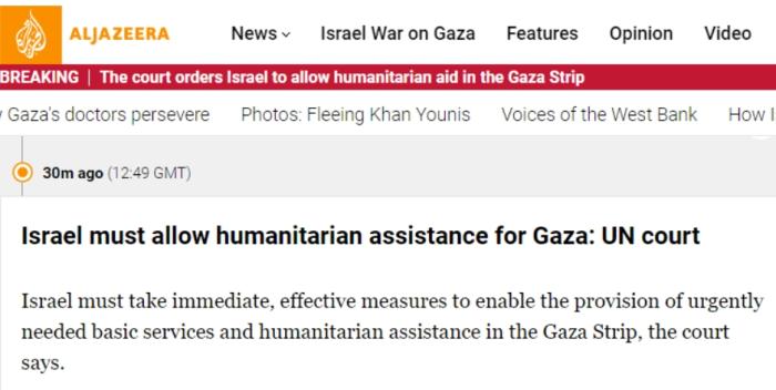國際法院命令以色列允許人道主義援助進入加沙,并表示,以色列必須“在其權(quán)力范圍內(nèi)采取一切措施,防止并懲罰直接和公開煽動實施種族滅絕的行為”。
