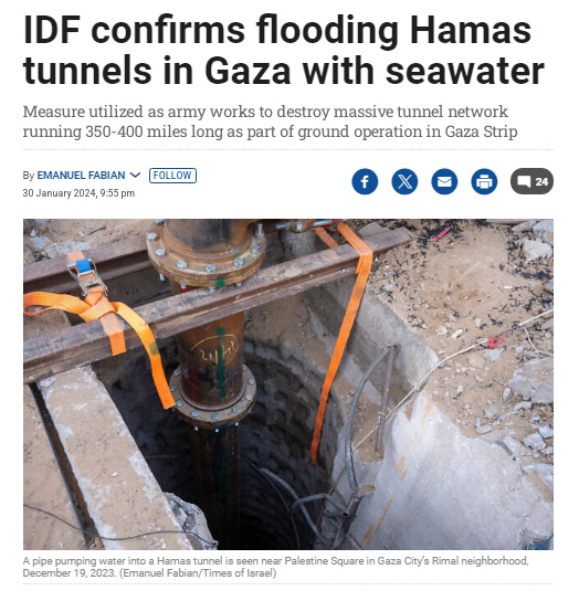 據(jù)報(bào)道,以軍在一份聲明中表示,以部隊(duì)和國防部官員共同開發(fā)了“幾種在加沙地帶向哈馬斯地下隧道注入高流量水的工具”,并補(bǔ)充說,這是“以軍用于處理(哈馬斯)地道的各類工具之一”。