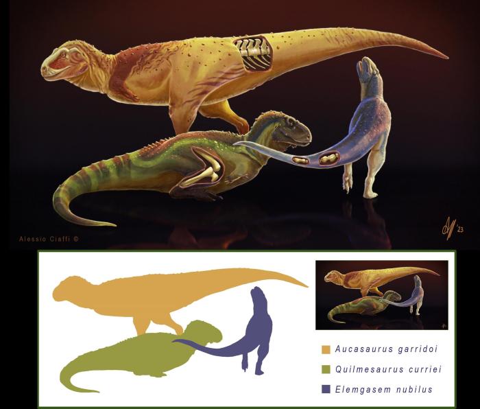 在本項(xiàng)研究中,論文第一作者兼通訊作者、香港中文大學(xué)和阿根廷國(guó)立內(nèi)格羅河大學(xué)Mattia A. Baiano與同事及合作者一起,利用計(jì)算機(jī)斷層掃描(CT)和骨骼組織學(xué)分析,研究了3組獸腳類(lèi)恐龍的化石遺骸——分別來(lái)自加氏奧卡龍、迷霧嚙王龍和柯氏基爾梅龍,它們均生活在白堊紀(jì)晚期(距今約9000萬(wàn)至7000萬(wàn)年前)的南美洲。3個(gè)物種均為阿貝力龍科的獸腳類(lèi)恐龍,這類(lèi)恐龍的典型特征是前肢極短,頭骨深且有力并常生有冠、角等骨質(zhì)裝飾部位。
