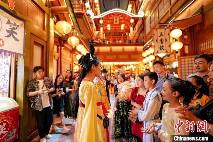 圖為游客在“長安十二時辰”沉浸式唐風(fēng)市井生活街區(qū)體驗、游覽。 滕瀚 攝