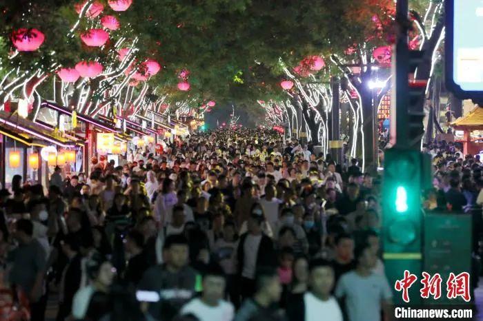 圖為西安大唐不夜城游人如織。 張遠(yuǎn) 攝