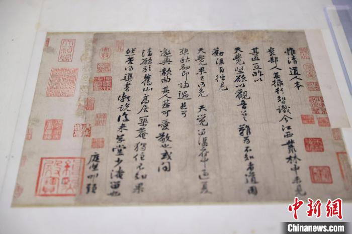 圖為展出的黃庭堅(jiān)《惟清道人帖》真跡。中新網(wǎng)記者 駱云飛攝