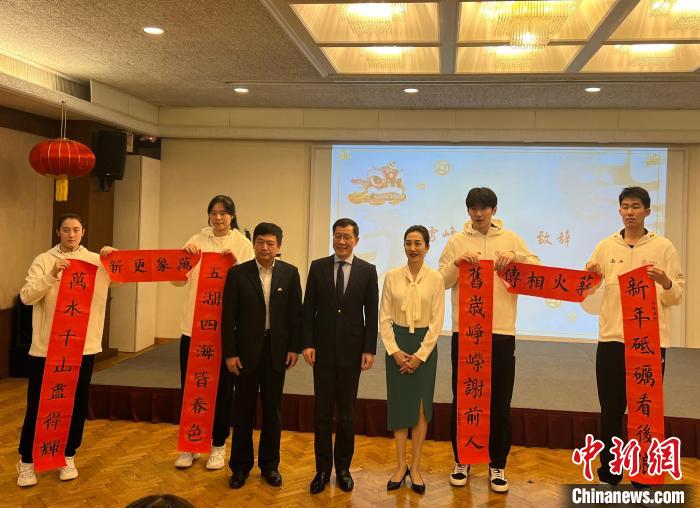 此訪適逢中國龍年春節(jié)前夕,同學(xué)們還帶來了用毛筆書寫的春聯(lián)——上聯(lián)是“新年砥礪看后浪”,下聯(lián)是“舊歲崢嶸謝前人”,橫批為“薪火相傳”。(完)