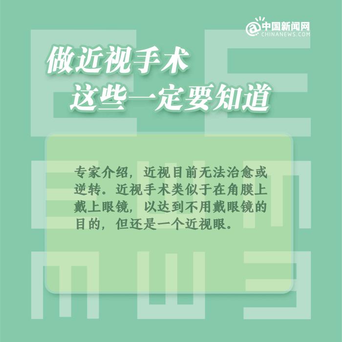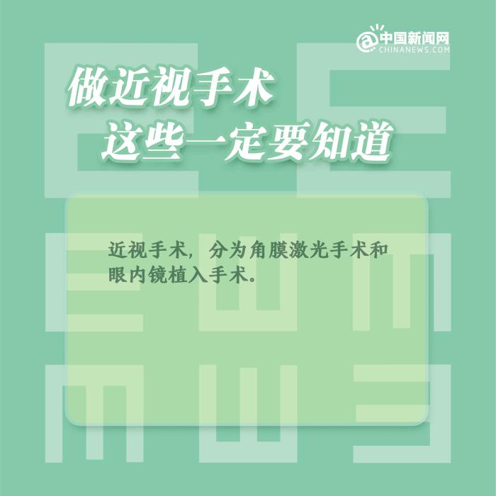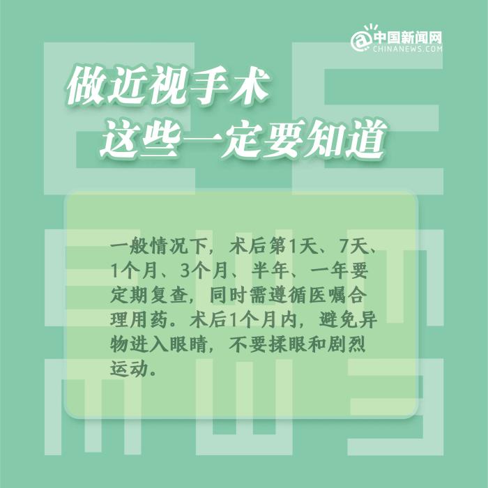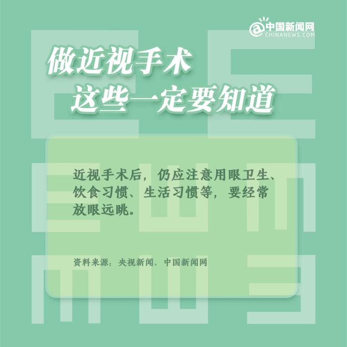 中新網(wǎng)2月4日電 ①近視手術(shù),分為角膜激光手術(shù)和眼內(nèi)鏡植入手術(shù);②一般來說,近視手術(shù)的時間建議在18-50歲之間;③術(shù)后1個月內(nèi),避免異物進入眼睛,不要揉眼和劇烈運動;④術(shù)后仍應(yīng)注意用眼衛(wèi)生、飲食習慣、生活習慣等,要經(jīng)常放眼遠眺。