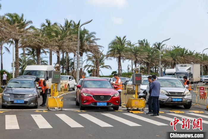 記者5日中午在??谑虚L(zhǎng)樂(lè)路的小車查驗(yàn)點(diǎn)看到,雙向4車道被改為東往西單向行駛,過(guò)海的小車排隊(duì)經(jīng)查驗(yàn)點(diǎn)時(shí),聯(lián)網(wǎng)的攝像頭拍下車牌信息,一旁電子屏馬上就顯示車主所購(gòu)輪渡的發(fā)船時(shí)間。若發(fā)船時(shí)間在三個(gè)小時(shí)內(nèi),車輛直行直通港口。若超過(guò)三個(gè)小時(shí),執(zhí)勤人員引導(dǎo)車輛駛離進(jìn)港通道。