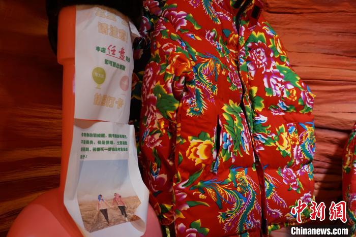 濟南市芙蓉街一家商店任意消費即可選擇穿花棉襖或軍大衣拍照打卡。王采怡 攝