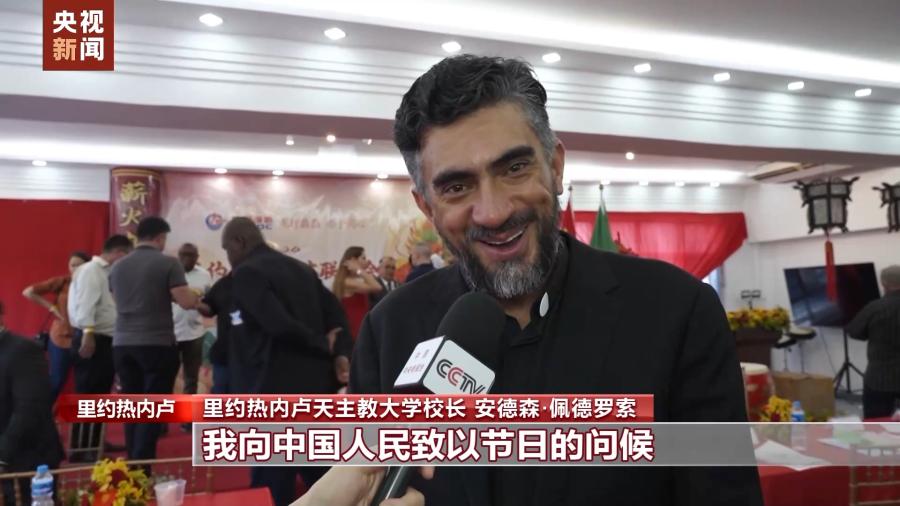 里約熱內(nèi)盧天主教大學校長 安德森·佩德羅索:我們與中國的合作已經(jīng)有十二年了,孔子學院就建在我們大學。我非常高興能參加今天的活動,我向中國人民致以節(jié)日的問候,希望我們今后加強合作。新春快樂,龍年大吉。