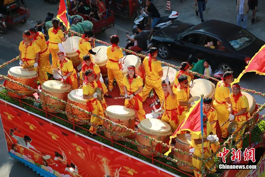 鼓手演奏音樂為“拜年日”巡游增添喜慶氛圍。駱云飛 攝