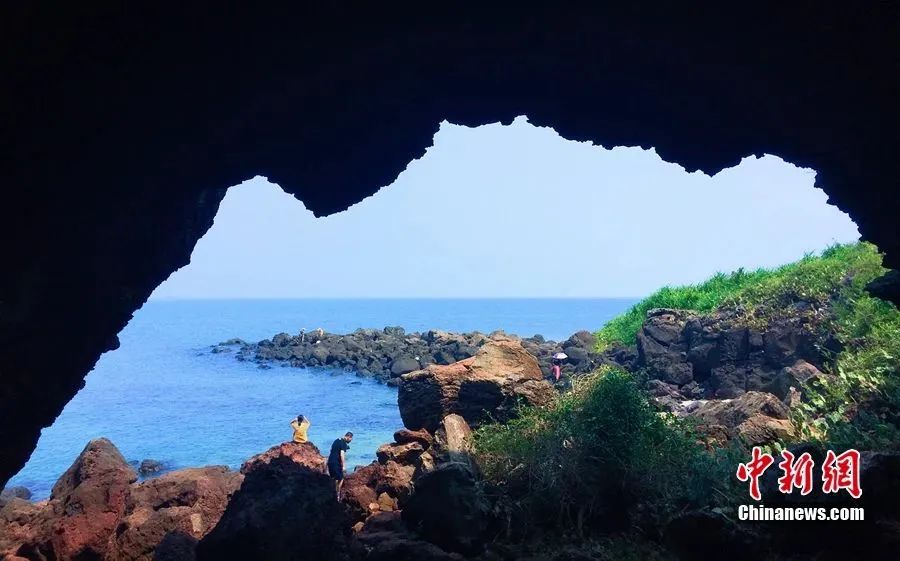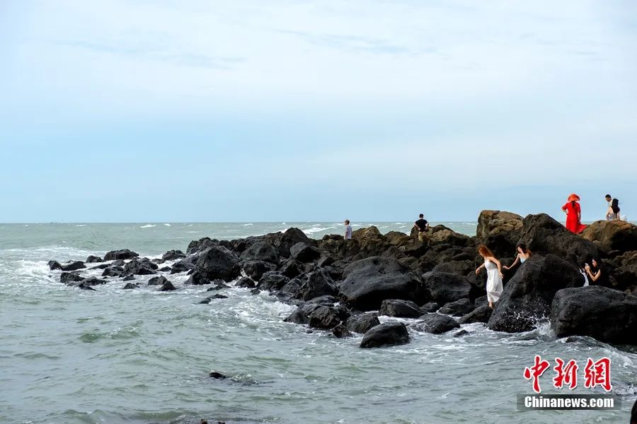 游客在儋州峨蔓火山海岸龍門激浪景觀點游玩。凌楠 攝