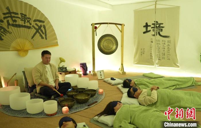 2月,在長沙市開福區(qū)一家頌缽音療館內(nèi),消費(fèi)者體驗(yàn)頌缽療愈?!±钣?攝