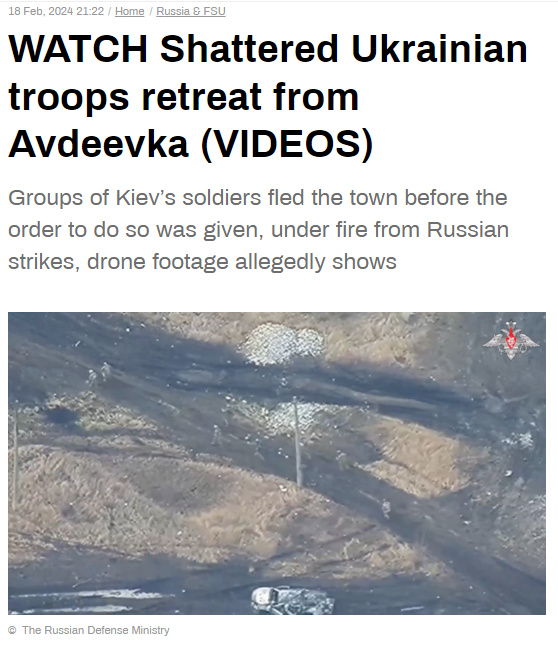 中新網(wǎng)2月19日電 綜合俄羅斯媒體報(bào)道,當(dāng)?shù)貢r(shí)間18日,俄羅斯國防部發(fā)布了烏克蘭武裝部隊(duì)從阿夫杰耶夫卡潰逃的視頻。