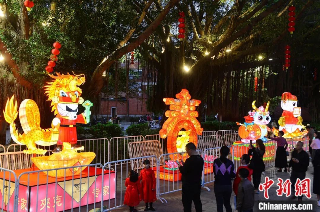 福州三坊七巷古街區(qū)游人如織,龍形燈飾點(diǎn)亮新春氛圍。中新社記者 王東明 攝