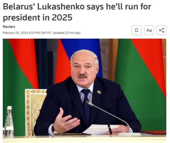 外媒:白俄羅斯總統(tǒng)盧卡申科表示將參加2025年總統(tǒng)大選