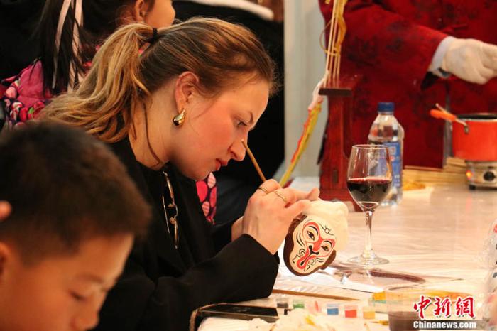 表演結(jié)束后,主辦方還準(zhǔn)備了迷你廟會(huì)體驗(yàn)活動(dòng),畫(huà)臉譜、吹糖人等傳統(tǒng)民俗活動(dòng)吸引了眾多法國(guó)青少年圍觀?!拔覑?ài)中國(guó)!”他們表示,雖然來(lái)到中國(guó)的時(shí)間尚短,但已經(jīng)感受到中國(guó)文化的魅力。