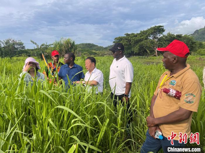 當(dāng)?shù)貢r(shí)間2月21日下午,林占熺(右三)在斐濟(jì)指導(dǎo)當(dāng)?shù)鼐輼I(yè)發(fā)展。(中國(guó)國(guó)家菌草工程技術(shù)研究中心供圖)