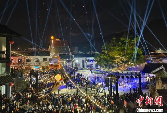 賴聲川歷時多年在家鄉(xiāng)江西會昌打造的會昌戲劇小鎮(zhèn)開幕,燈光秀現(xiàn)場人氣爆棚。(受訪者供圖)