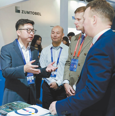 2023年11月,2023金磚國家新工業(yè)革命展在福建廈門舉辦。圖為中外企業(yè)代表在現(xiàn)場交流。