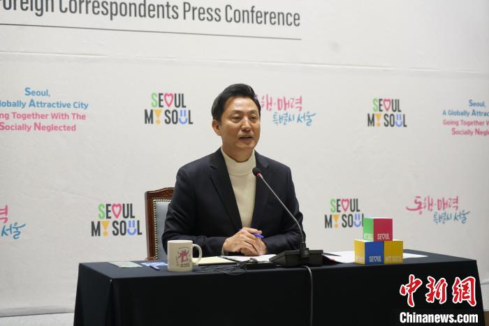 2月28日下午,首爾市長吳世勛在首爾市廳舉行新年外媒記者會。中新網(wǎng)記者劉旭攝