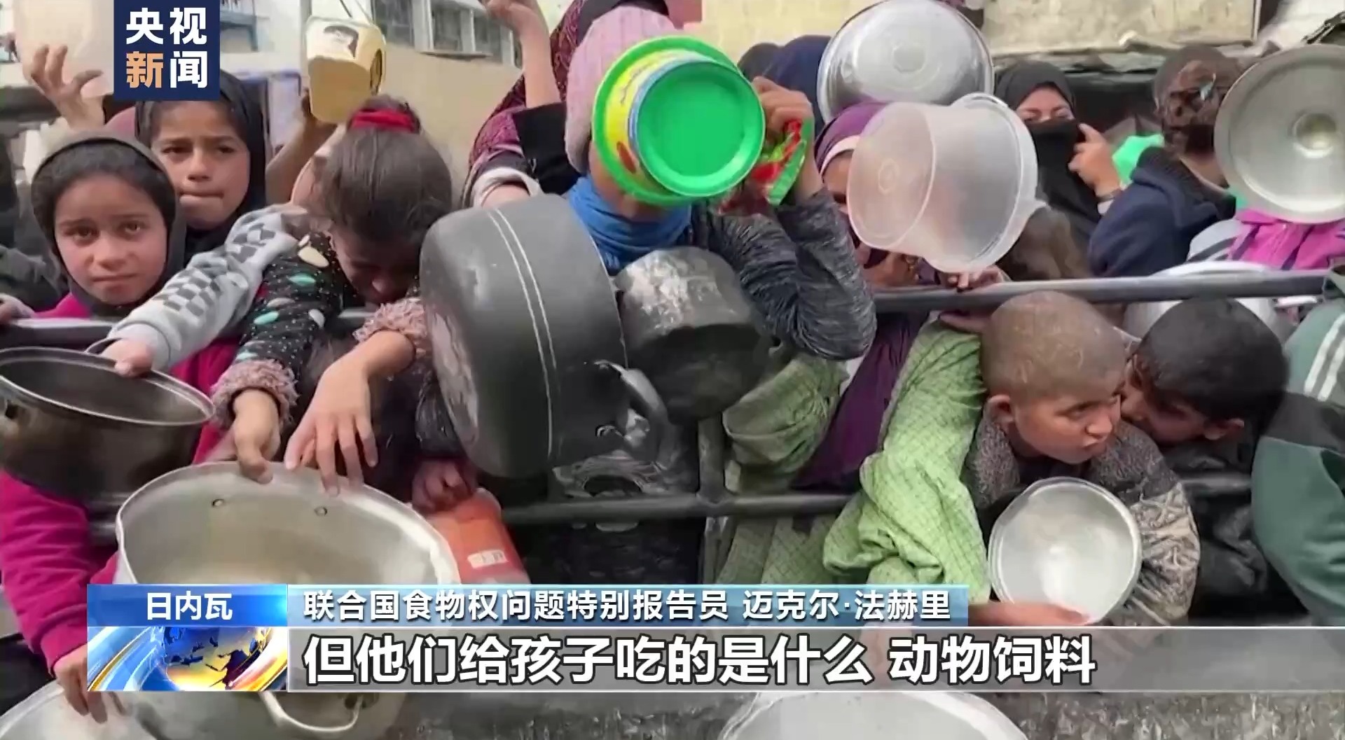 聯(lián)合國食物權問題特別報告員 邁克爾·法赫里:在加沙地帶很多人已經放棄吃飯,把食物留給孩子。但他們給孩子吃的是什么?動物飼料。他們給孩子喝什么水?臟水。這會讓他們的孩子更容易生病。