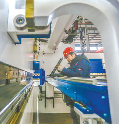 安徽馬鞍山市博望區(qū)亞威機床制造有限公司技術(shù)人員趕制出口國外的智能數(shù)控機床。