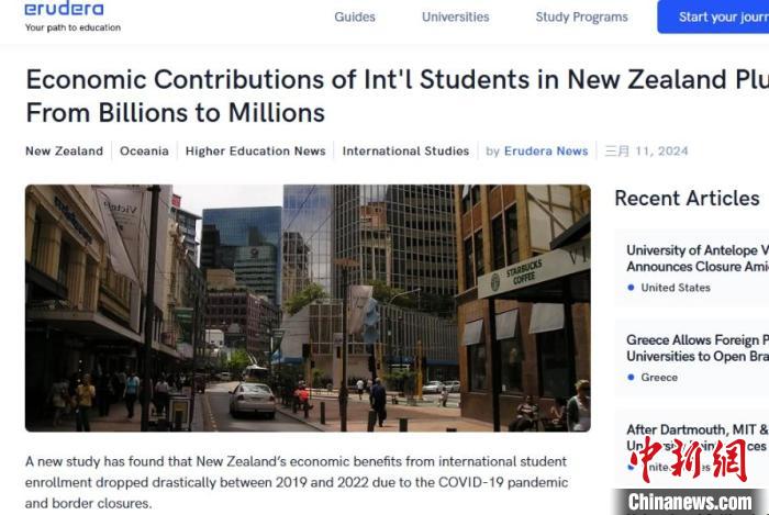 一項新調(diào)查顯示,中國仍是新西蘭的留學生主要來源國。圖片來源于EruderaNews網(wǎng)站報道截圖。