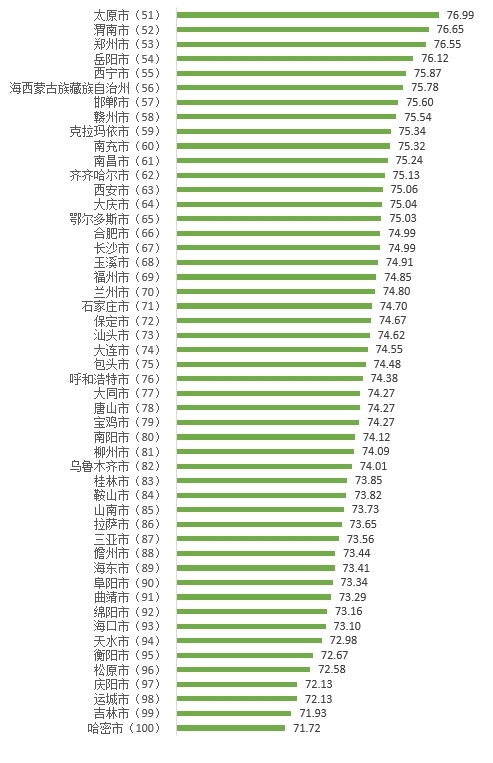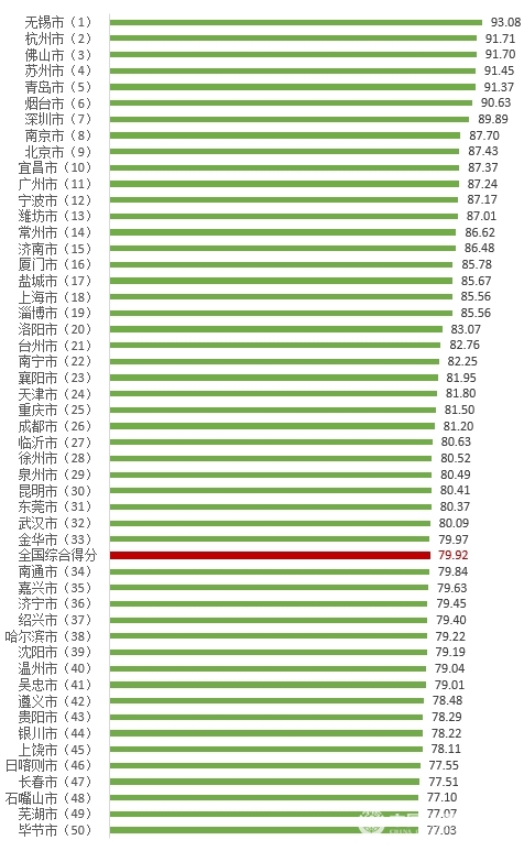 中消協(xié)相關(guān)負(fù)責(zé)人分析指出,100個(gè)被測(cè)評(píng)城市排名總體穩(wěn)定,47個(gè)城市滿意度得分提高,城市得分表現(xiàn)和提升數(shù)量均優(yōu)于2022年。除個(gè)別城市外,東部和南部城市、經(jīng)濟(jì)發(fā)展水平高的城市得分要高于中西部及經(jīng)濟(jì)發(fā)展一般的城市;東部地區(qū)加速引領(lǐng)消費(fèi)者滿意度向好提升,中西部地區(qū)加速追趕,城市之間分差有所降低。無錫、杭州、佛山、蘇州、青島、煙臺(tái)、深圳、南京、北京、宜昌分列100個(gè)城市消費(fèi)者滿意度綜合得分第一至十名。