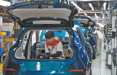 今年1月,中國車企長城汽車旗下電動汽車歐拉好貓在泰國羅勇新能源汽車制造基地正式下線,成為泰國首款本土量產(chǎn)的純電車型,將加速泰國汽車行業(yè)電氣化轉(zhuǎn)型。圖為該制造基地的生產(chǎn)車間內(nèi),工人在進(jìn)行汽車裝配作業(yè)。