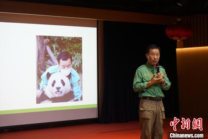 資料圖:姜哲遠(yuǎn)在活動上分享自己飼養(yǎng)大熊貓的經(jīng)歷。中新網(wǎng)記者 劉旭 攝