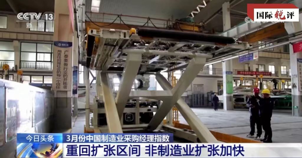 中國(guó)官方最新數(shù)據(jù)顯示,今年3月的PMI、非制造業(yè)商務(wù)活動(dòng)指數(shù)和綜合PMI產(chǎn)出指數(shù)分別為50.8%、53.0%和52.7%,比上月上升1.7、1.6和1.8個(gè)百分點(diǎn),均位于50%以上的擴(kuò)張區(qū)間。其中3月份制造業(yè)活動(dòng)出現(xiàn)半年來(lái)首次擴(kuò)張,并且創(chuàng)下一年來(lái)新高。對(duì)此,美國(guó)彭博社等外媒稱(chēng),這表明中國(guó)制造業(yè)前景趨于樂(lè)觀,整體經(jīng)濟(jì)正在企穩(wěn)。