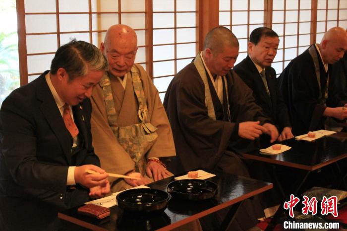 中國駐大阪總領(lǐng)事薛劍、領(lǐng)事崔小萍,日本黃檗宗大本山萬福寺管長近藤博道、宗務(wù)總長荒木將旭、庶務(wù)部長關(guān)塚哲心,京都府茶業(yè)會(huì)議所會(huì)首堀井長太郎,奈良縣日中友好協(xié)會(huì)會(huì)長天根俊治、宇治市日中友好協(xié)會(huì)事務(wù)局長矢野友次郎以及黃檗文化促進(jìn)會(huì)會(huì)長林文清,日中茶文化交流協(xié)會(huì)理事長于昊男等中日各界人士出席。