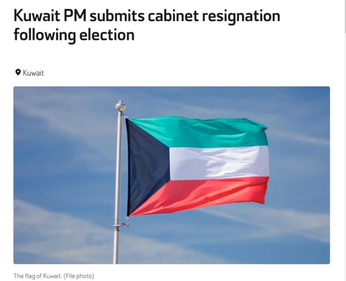 外媒:科威特首相向國家元首遞交內(nèi)閣辭呈