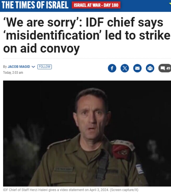 哈萊維表示,以軍無意傷害“世界中央廚房”援助人員,該事件是“在夜間、在戰(zhàn)爭期間、在非常復(fù)雜的條件下因識(shí)別錯(cuò)誤造成的誤傷”,原本不該發(fā)生。他表示,以軍“對無意中傷害到‘世界中央廚房’成員感到抱歉”。