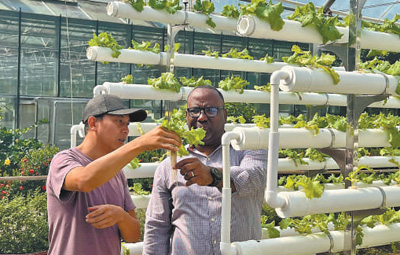 中國援多米尼克農(nóng)業(yè)技術(shù)合作項目始于2005年,目前已開展至第八期。項目引進了多個高附加值農(nóng)作物品種,促進了多米尼克農(nóng)業(yè)產(chǎn)業(yè)升級。圖為中多兩國農(nóng)業(yè)專家在觀察水培系統(tǒng)種苗生長情況。