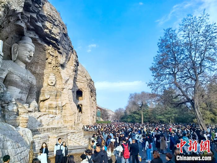 清明假期云岡石窟人山人海。中新網(wǎng)記者 李金磊 攝