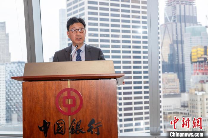 當地時間4月10日,以“經濟合作與文化傳承的雅致之約”為主題的“甘肅雅集”推介活動在美國紐約曼哈頓舉行。圖為甘肅省委常委、副省長張錦剛致辭。 中新社記者 廖攀 攝