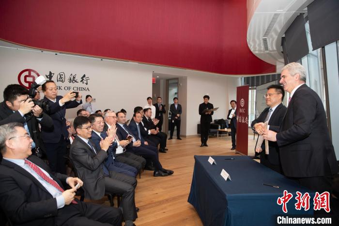 當地時間4月10日,以“經濟合作與文化傳承的雅致之約”為主題的“甘肅雅集”推介活動在美國紐約曼哈頓舉行。圖為甘肅省人民對外友好協(xié)會同美中綠色基金會簽署了諒解備忘錄?! ≈行律缬浾?廖攀 攝