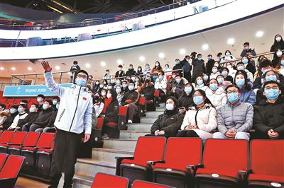 在現(xiàn)場(chǎng),陳大鵬通過(guò)“由內(nèi)及外”“由下至上”的方式,將場(chǎng)館的競(jìng)賽層、觀眾層、包廂層等流線以及各點(diǎn)位進(jìn)行了詳細(xì)的講解,并以“你需要知道的25件事”為主題,為志愿者們講解了作為場(chǎng)館工作人員必須遵守的各項(xiàng)規(guī)章制度?!斑@25件事包括志愿者在場(chǎng)館工作的方方面面,既有場(chǎng)館日常管理、防疫規(guī)定,又有志愿者工作期間個(gè)人生活及行為規(guī)范、工作紀(jì)律和文明禮儀等。”陳大鵬說(shuō)。