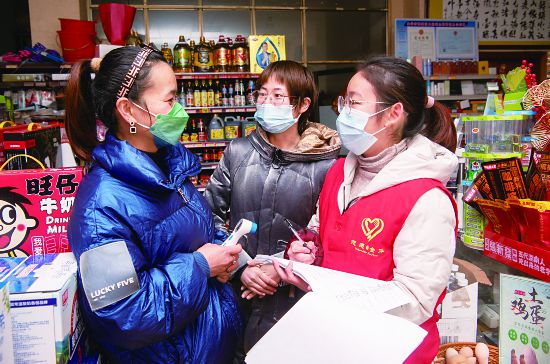1月11日,在金華婺城區(qū)城北街道站前社區(qū),放寒假回金的大學(xué)生傅雨曦,穿上紅馬甲協(xié)助社區(qū)工作人員到沿街店鋪核查防疫措施落實情況,打電話了解外地返金人員行程及疫苗接種情況。傅雨曦說,她是共青團員,和同學(xué)報名參加婺城大學(xué)生寒假疫情防控志愿服務(wù),在社區(qū)、疫苗接種點等地做公益服務(wù)。(時寬兵)