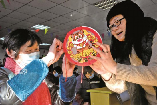 1月11日下午,嘉興秀洲區(qū)新城街道社區(qū)組織培育發(fā)展中心邀請(qǐng)新居民和本地居民歡聚一堂,通過本地居民教新居民學(xué)說嘉興話、做燈籠等活動(dòng),拉近新老居民之間的距離,讓新居民朋友心生歸屬感,開心留“嘉”過年。(馮玉坤)