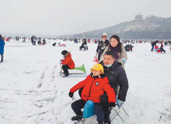 圖為游客在頤和園樂享冰雪運動。作為第八屆北京市屬公園冰雪游園會活動內(nèi)容之一的頤和園“圓夢冬奧,相約頤和”項目,今年首次設(shè)置了雪上娛樂項目,讓市民不出京城就可親身感受冰雪魅力。 本報記者 吳鏑攝