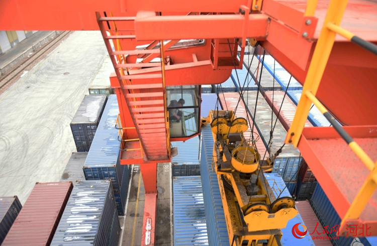 人民網(wǎng)石家莊2月2日電 (祝龍超)“再往前一點(diǎn),右邊一點(diǎn),好的?!?月2日9點(diǎn),在地面作業(yè)人員的配合下,坐在30多米龍門吊駕駛室的滑恒旭穩(wěn)穩(wěn)地操作著龍門吊車將一個(gè)20多噸的集裝箱放到了貨運(yùn)專列上。