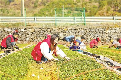 2月24日,在杭州淳安縣汾口鎮(zhèn)百畝畈村茶葉育苗基地,黨員志愿者與茶農(nóng)一道搶抓農(nóng)時(shí)培管茶苗,穿梭在育苗茶地中進(jìn)行除草、順苗、施肥、壘溝等管理工作,并將出圃茶苗銷(xiāo)往外地。