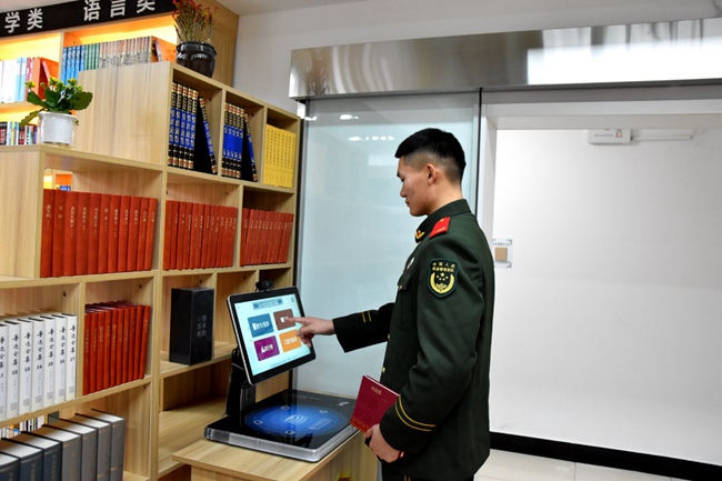 與此同時,支隊還在軍營各處建起班級圖書角,放置自動圖書借閱機,并依托強軍網(wǎng)搭建起智慧軍營閱讀平臺,讓官兵可以隨時根據(jù)自身的興趣愛好精選學(xué)習(xí)內(nèi)容,瀏覽前沿知識,在整個軍營營造“書香滿軍營、官兵研經(jīng)典”的濃厚氛圍。