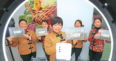 安徽省亳州市蒙城縣雙鹿村一家種植合作社的社員在學(xué)習(xí)電商銷售技巧。胡衛(wèi)國(guó)攝(人民圖片)