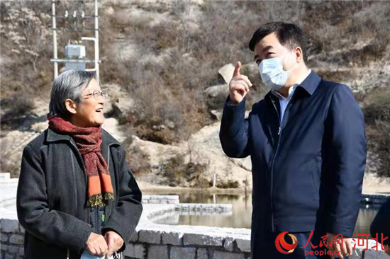 黨曉龍與鄧小嵐在保定阜平鐵貫山腳下暢談基礎教育。 人民網(wǎng) 張繼航攝