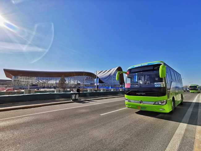 服務(wù)于延慶賽區(qū)的氫燃料電池車。福田汽車供圖