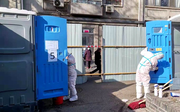 剛封閉不久,北新橋街道后永康胡同東口便增加了2座臨時單坑的移動公廁,為后永康胡同1號院、11號院隔離居民和防疫人員提供服務(wù);民旺社區(qū)周邊胡同連夜搭建了12座單坑臨時移動公廁,在民旺南胡同為底商設(shè)置2座單坑臨時移動公廁;在北新橋育樹胡同周邊,11座移動公廁也安裝完成。