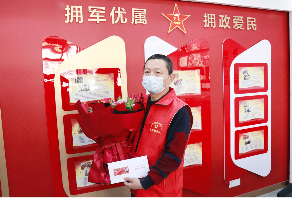 曾參加對越防御作戰(zhàn)的曹繼紅1988年退役,2021年退休后,熱心公益的他在退役軍人服務(wù)站進行志愿服務(wù),榮獲2021年度迎澤區(qū)“最美退役軍人”稱號。為了褒獎曹繼紅退役不褪色的精神,當日,工作人員將退役軍人優(yōu)待證送到曹繼紅的工作崗位,負責本批次制證的郵儲銀行工作人員現(xiàn)場為曹繼紅開卡。