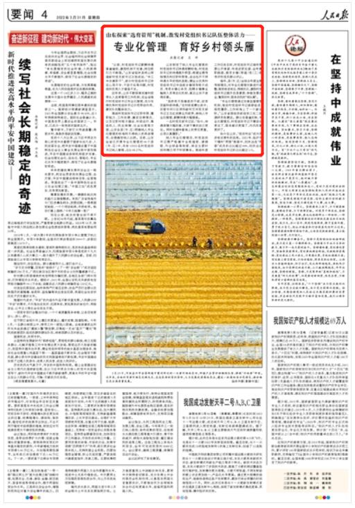 人民日報點贊山東“選育管用”機制:專業(yè)化管理 育好鄉(xiāng)村領頭雁
